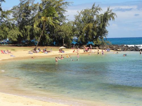 浅瀬で波がないポイプビーチは家族で安心して楽しめます。