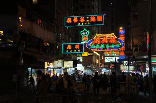 旺角のネオン街。夜になっても人通りの多さは変わらない。