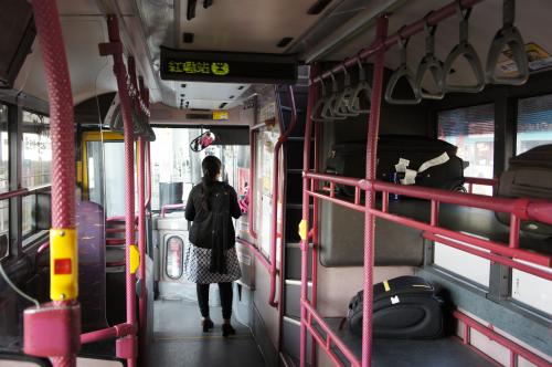 目的地は九龍島(カオルーン)の中心地である尖沙咀-Tsim Sha Tsui。車内電光掲示板には5つ目が尖沙咀とあるが、市街地に入ると停留所が多くどこで降りるかわからない。ドライバーや周囲の人に聞こう。