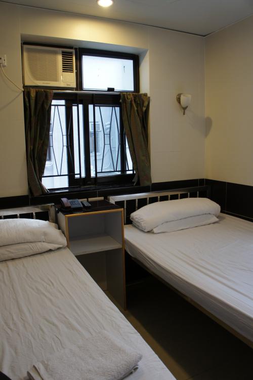 日本のビジネスホテルと比べたらいかん。2名定員で4畳半ほどのダブルルーム。狭いとはいえ必要なものはすべて揃っており清潔でパッカーには居心地がいい。ポット・カップ・香港用Cプラグ・アウトレット2箇所・タオル・トイレットペーパー・ソープ付。TV・エアコン・シーリングファン・24Hホットシャワー・Wi-Fi接続無料。