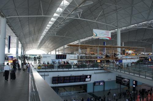 バスは香港国際空港ターミナル1のDepartureフロアに到着。
