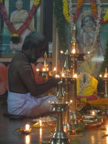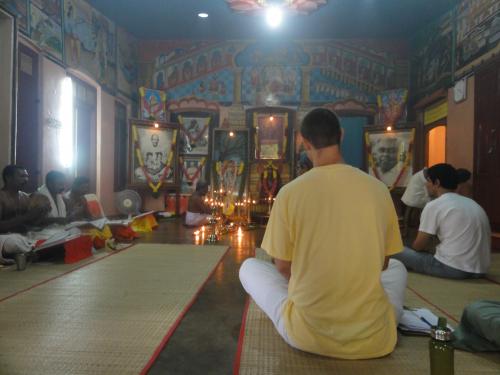 11月4日、アシュラム生活の一貫としてカルマヨガの時間がある。無償奉仕の心を育てる目的でドミトリーの掃除、食事の配膳、プラサードの提供、ブティックの販売員など各々仕事を割り当てられる。