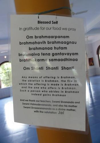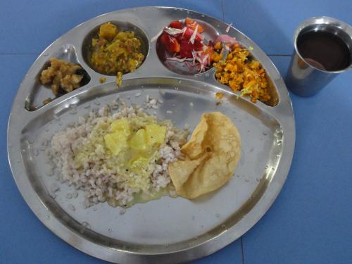 アシュラム編 #3 ご遠慮したい・・・アシュラムのミールス2010/11/03 in シバナンダヨガアシュラム tagged シバナンダヨガ / インド 続11月3日、前回同様、お腹の調子がよろしくない。苦手だったアシュラムのミールスは今回もおいしいと感じられない。 食事の前には 「OM ブランマ~パナム~♪」 とマントラを唱える 南インドのミールスはベジタリアンで味が薄い 食事の時間は食物に感謝し黙って食べるのがルール よくないなぁ~と思いつつ日本から持参したカロリーメイトを食べたりする。インドの旅で無理はできないから仕方ない。 namaste, Tweet こちらの記事もおすすめです 【イベントレポート】YRO No.8 アシュラム編 #2 ヨガバケーションとしての滞在 アシュラム編 #4 滞在中は必須!カルマヨガで行う奉仕活動 アシュラム編 #1 シバナンダヨガアシュラムに到着・・・する前のひと悶着 TTC アシュラム編 #4 共同生活の幕開け!TTC開始! day1 アシュラム編 #3 長岡女子のヨガバケーション(3)