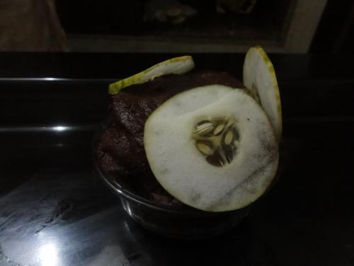 さて、その後実習。フェイスパウダーにすり潰したバナナと卵白を加えてこねる。更に牛乳を加えてこねまくり、スライスしたキュウリをトッピング!