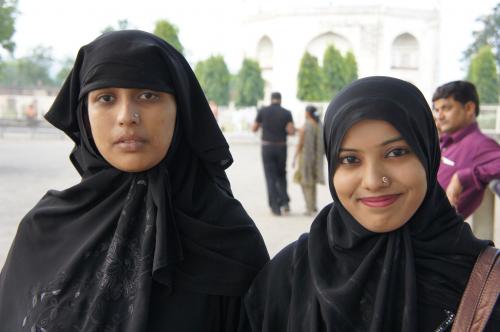 アウランガーバードはムスリムが多い。ここにも家族連れが多く訪れている。・・・にしてもインドの強烈な日差しの中、アバヤ(黒い衣装)は暑いだろうなぁ。目以外のすべてを隠す女性もいれば、彼女たちのように顔全体を出してる女性もいる。