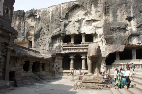 エローラ第16窟、カイラーサナータ寺院が一番の見どころ。8世紀の中頃、石工たちが岩肌をノミで削った奇跡の彫刻。