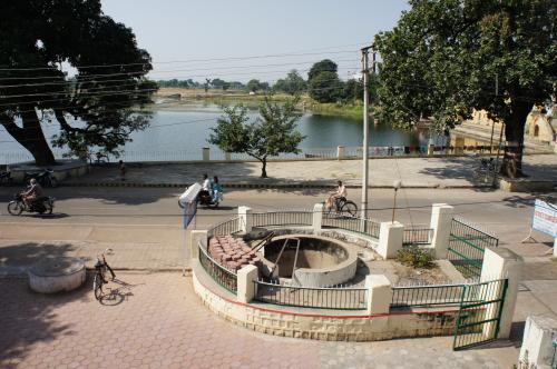 ①沐浴池(Shivsager)前の大通りであるAirport Rd.から右折