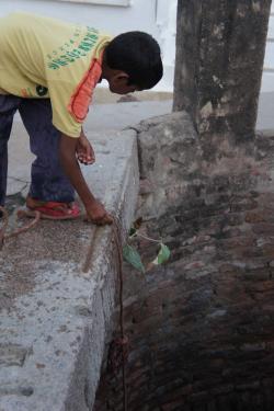 街にある井戸から水を汲んで生活をしている。