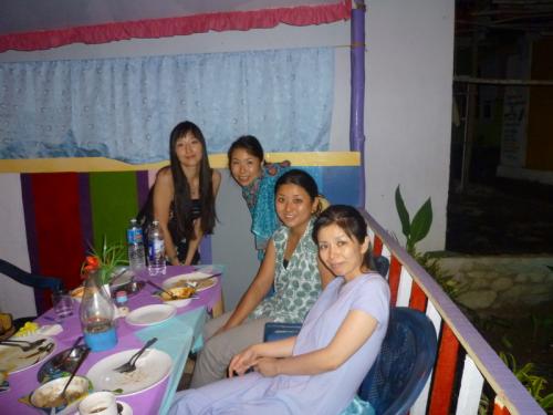 おととい、Swiss Cafeで「日本人の子がいるよ」と紹介されたM子ちゃんだ。彼女は浅黒く日焼けした肌の持ち主で流暢な英語を話していた。「長く旅してる子かしら?」と思ったら、コルカタ方面の某大学で教師をしているという。滞在中の村では英語が通じないため仕方なしに州語であるベンガル語をマスターしたという優秀な女性だった。