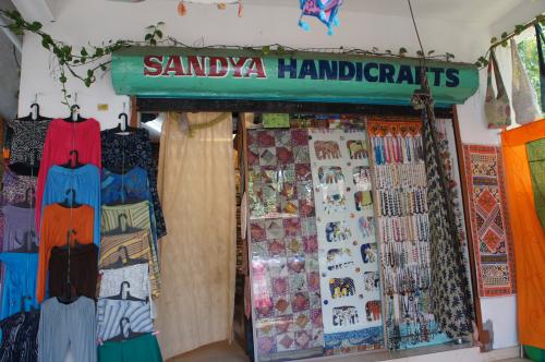 SANDYA HANDICRAFTSはコバラムビーチのメインストリートから一本裏通りに入ったLonely Planet(レストラン)のそばにある。