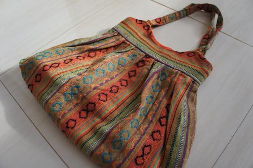 こちらはオレンジ×ターコイズのバッグ。生地は丈夫だが縫製が雑なので順調にいけば壊れる。底が破け、取っ手と本体が分離する。知らぬ間にバックの中身が落ちないことを祈るw