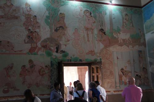 寺院内部に描かれた壁画は日本画家の野生司香雪によるもの。「降魔成道」のシーンでしょう。