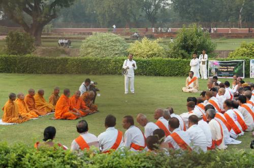 公園内では僧侶や巡礼者、観光客に対しても説法会が行われている。