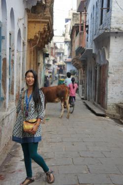 人ごみレベルは渋谷。この街の石畳みを私たち人間と同じように牛やヤギが闊歩する。視線を下げれば痩せこけた野良犬が道端で飢えて死んでいる。塀の上には売り物のフルーツを狙う猿が目を光らせている。生存競争は人だけではないというのを思い知らされる。