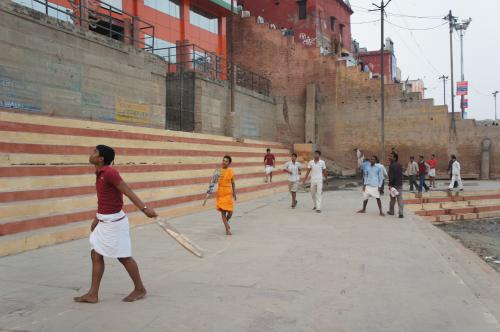 ガートには多くの人が集まる。子供たちは国民的スポーツのクリケットをしている。