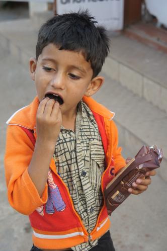 オレオもどきをほおぼる子。