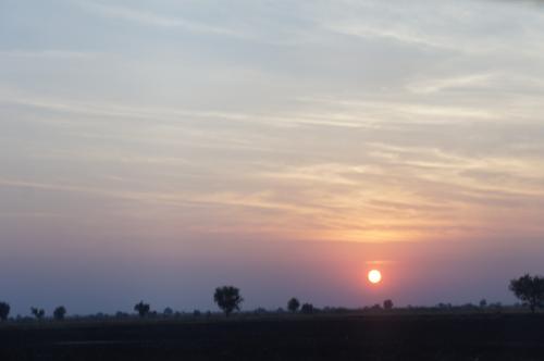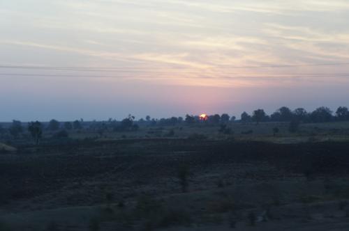 荒涼な大地に昇る朝日は赤く、大きく、美しかった。