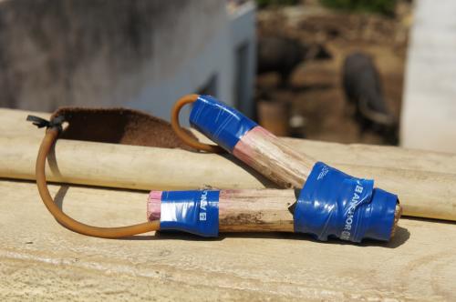 「ハンピは猿がいるから寄ってきたらこれで撃退するんだ。」と