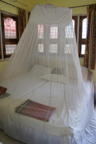 蚊が多いハンピはどの宿にもこうして蚊帳があるのだ。
