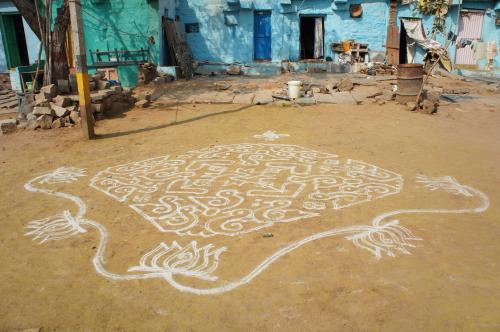 自宅前にこういった絵柄を描く家庭が多い。「福は内」的な意味かなぁ?