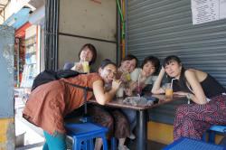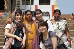 寺院前にて。インド人のマダムたちが寄ってきます。