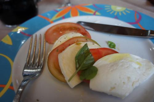 前菜はトマトとモッツァレラチーズのカプレーゼ。