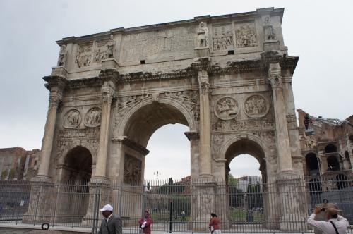 高さ28mを誇る堂々とした凱旋門。315年ミルヴィオ橋の勝利を記念して、ローマ元老院と市民により建てられた。表面を飾る見事なレリーフはトラヤヌス、ハドリアヌスなどの帝の建造物から運ばれたそう。