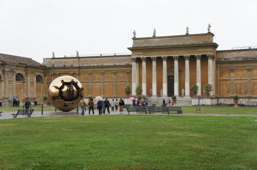 庭の中央にあるのは、アルナド・ポモドーロ作のブロンズのモニュメント「球のある球体」。