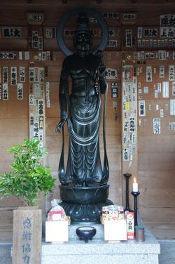 平和の観音菩薩(左)と私(右)