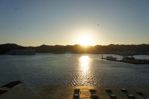 夕日が水面に輝く。