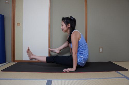 片脚を上腕にかけます。もう一方の片脚はかかとを強く前に押し出し、前面の大腿四頭筋は収縮させてハムストリングは強く伸張します。両手でマットを押しながら全身を持ち上げます。手首、腕、肩、さらに腹筋を鍛える全身を強化するポーズです。安易に行うと太ももがつりそうになりますw