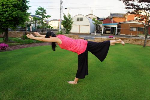 ③静止している間、背骨のエネルギーを延長し指先に向けて前に伸ばすとともに、上げた脚に向けて後ろにも伸ばします。パワフルなポーズにこもる力強さとバランスの美を感じてください。(参考文献:ヨーガバイブル)